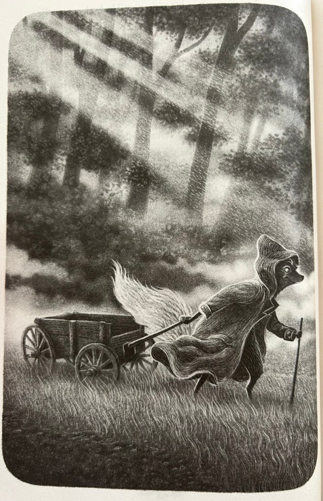 I really, really enjoyed The Undead Fox of Deadwood Forest by Aubrey Hartman. Clare is a one-eyed fox that is not quite dead, but not quite alive. He lives alone in Deadwood Forest and shepherds souls to their final afterlife destination: Peace, Pleasure, Progress, or Pain. Clare’s work moves along routinely until one day a feisty badger, Gingersnipes, passes through his door, but is not able to pass into any of the afterlife realms.
